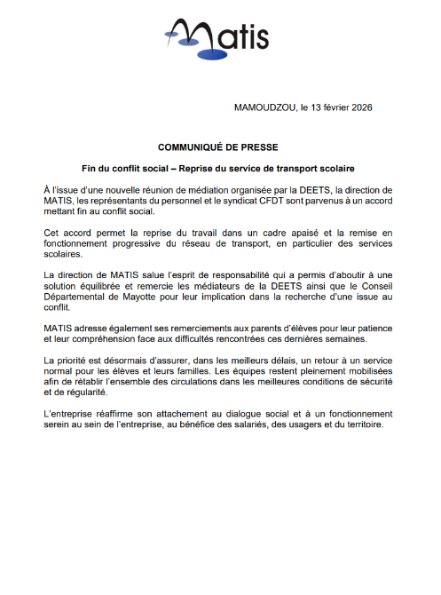 COMMUNIQUE DE PRESSE - Fin du conflit social - Reprise du service de transport scolaire